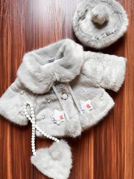 ست ۳تیکه پاییزه طلایه (شنل،کلاه،کیف) سایز ۷ماه تا ۳سال